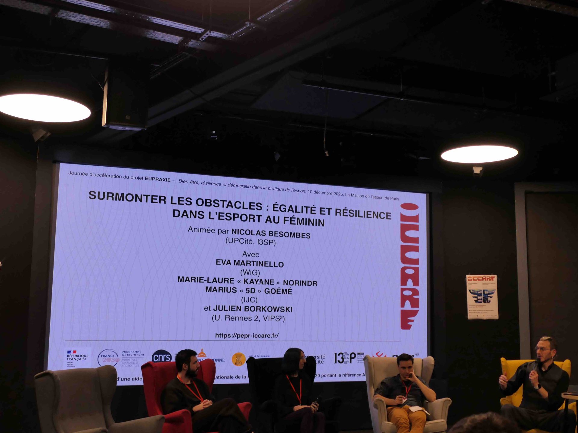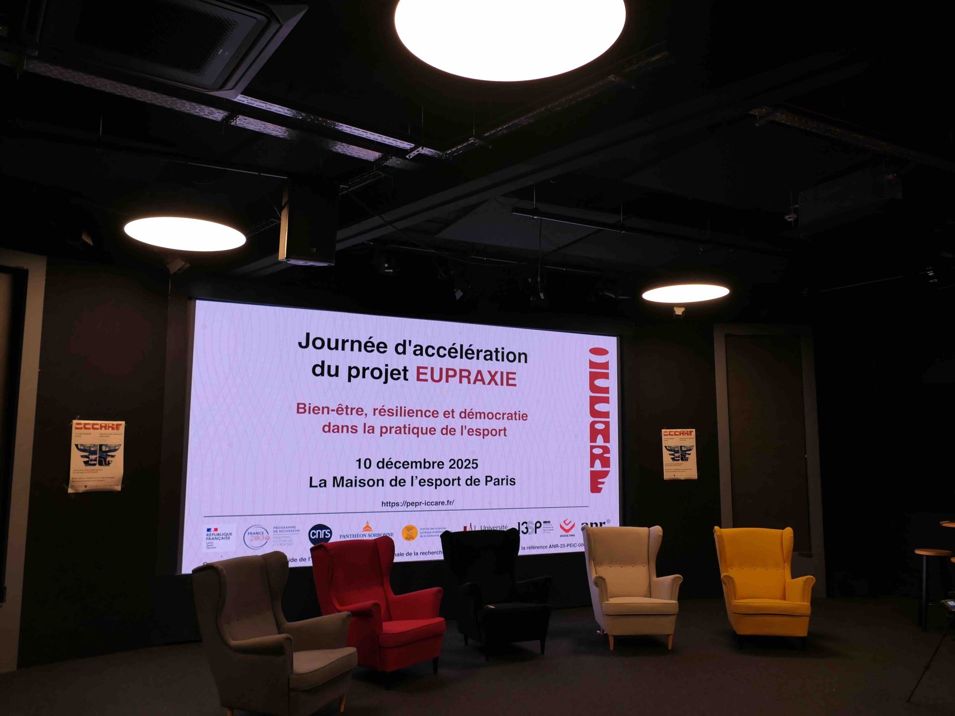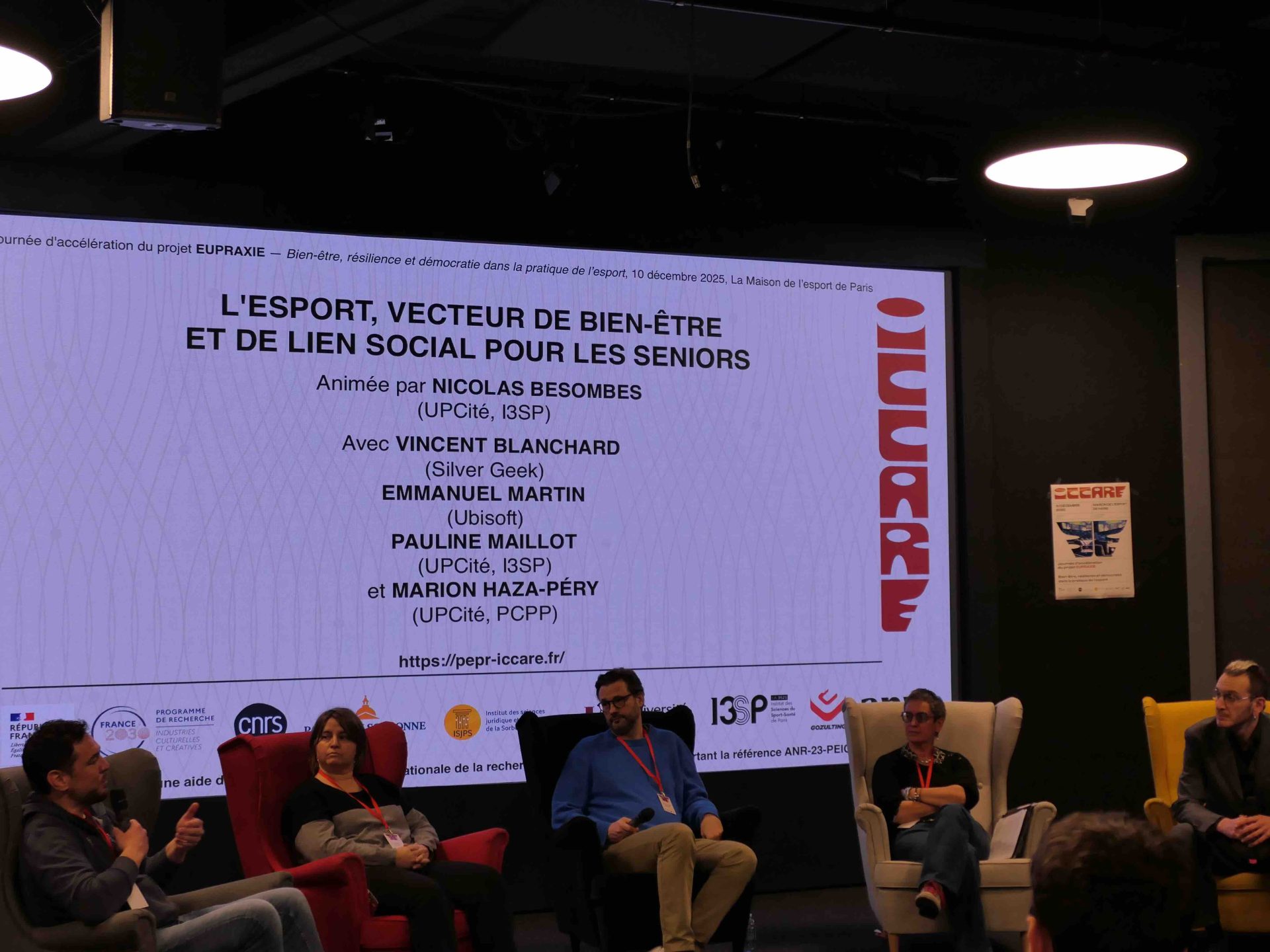 Le projet ciblé EUPRAXIE du programme de recherche (PEPR ICCARE) organise le 10 décembre 2025, sous la direction de Bernard Andrieu et Nicolas Besombes, une journée d'accélération "Bien-être, résilience et démocratie dans la pratique de l'esport", Paris, Maison de l’Esport de Paris (20 rue Soleillet, 75020 — 9h à 18h).