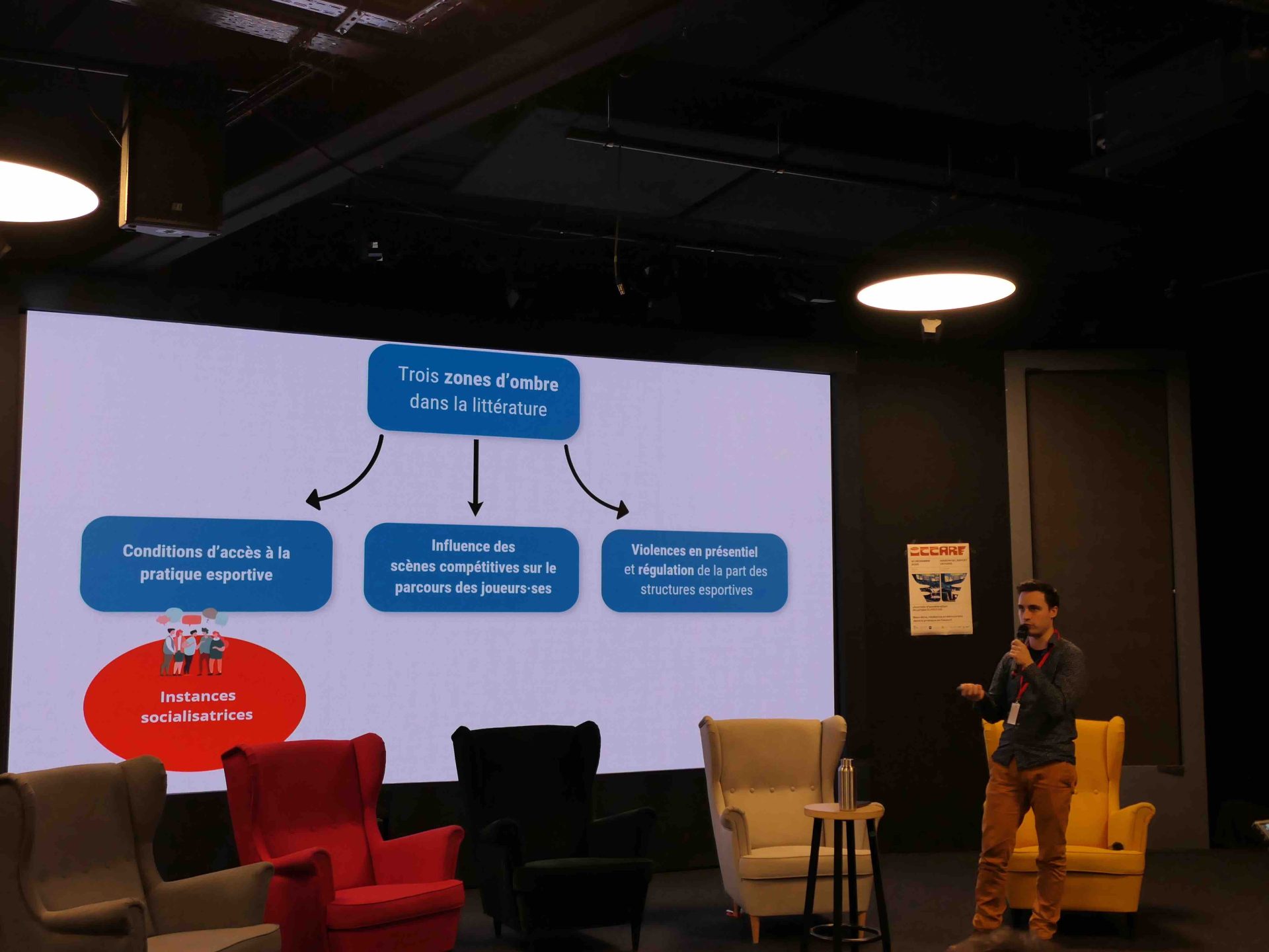 La journée d'accélération part du constat que l'effort pour surmonter la crise de la soutenabilité de l'industrie esportive vient se confronter aujourd’hui avec un renouvellement des praticien.e.s aux prises avec les nouvelles modalités de cette industrie culturelle. Cette mutation, à la fois sociale, économique, environnementale, institutionnelle et de fait citoyenne, en vient à questionner le rôle de l’esport en tant que facteur de bien-être et de résilience. Pour faire de l'esport une expérience (plus) démocratique qu'elle ne l’est déjà, nous organisons une rencontre entre les acteurs de l'écosystème esportif (joueur.ses, organisateurs d'événements, éditeurs, clubs, etc.) et universitaires afin de s'interroger sur les leviers et obstacles de l'esport en tant que vecteur de résilience, de santé collective et de citoyenneté durable.