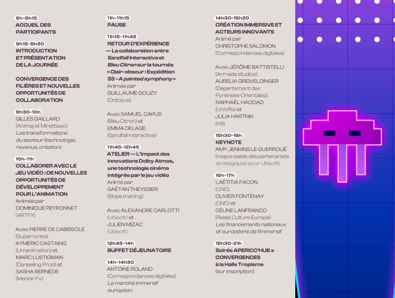 Ce rendez-vous réunit les acteurs du jeu vidéo, de l’animation, des effets spéciaux et de la production immersive autour des grandes mutations technologiques du secteur. Pensé comme un lieu de rencontres et de collaboration, l’événement met en lumière les innovations et la transformation des processus de production qui redéfinissent les pratiques et favorise les synergies entre filières pour stimuler l’émergence de nouveaux projets et partenariats.