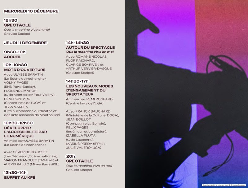 Avec ULYSSE BARATIN (Scène de Recherche), VOLNY FAGES (ENS Paris-Saclay), FLORENCE MARCH (u. de Montpellier Paul-Valéry), RÉMI RONFARD (Centre Inria de l’UGA) et JEAN VARELA (Cité européenne du théâtre et des arts associés de Montpellier)