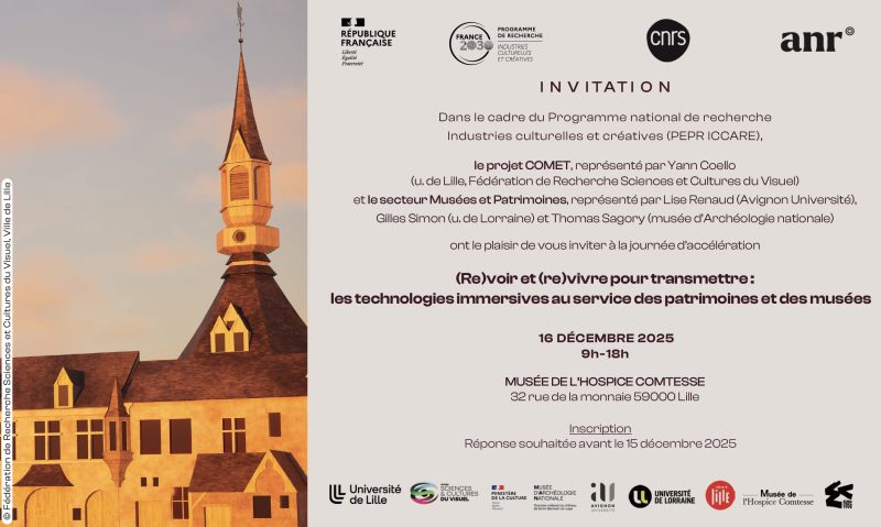 Autant de questions et de débats que nous espérons faire émerger lors de la prochaine journée d’accélération commune au projet COMET et au secteur Musées et Patrimoines. Chercheur·ses, professionnel·les des ICC, institutions patrimoniales, studios et entreprises y partageront leurs visions pour inventer ensemble les expériences immersives de demain, autour de démonstrateurs présentés par des équipes de recherche et des entreprises.