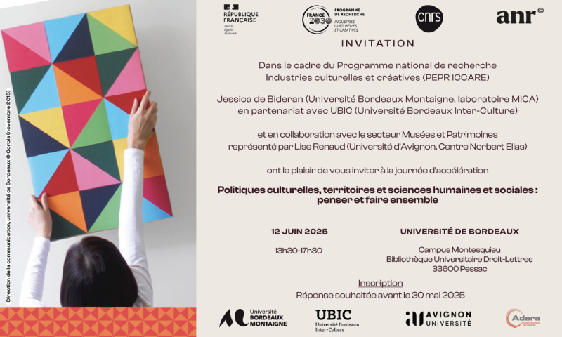 Depuis 2015, UBIC (Universités Bordeaux Inter-Culture) a pour but de fédérer une communauté de chercheurs et chercheuses des établissements d’enseignement supérieur et de la recherche bordelais autour d’une plateforme collaborative afin de construire des projets et espaces de coopération entre le monde académique et les acteurs socio-économiques des institutions et industries culturelles et créatives du territoire. Aux termes de ces 10 ans et face aux nombreux enjeux contemporains qui traversent le secteur culturel, il paraît pertinent de revenir sur cette expérience en adoptant un regard tout à la fois rétrospectif et prospectif.