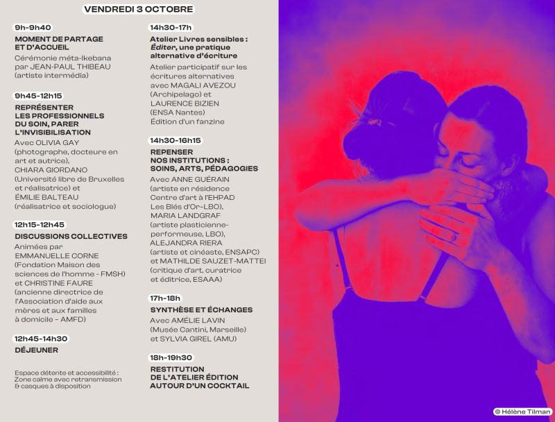 Avec OLIVIA GAY (photographe, docteure en art et autrice de la série À domicile), CHIARA GIORDANO (sociologue, Université libre de Bruxelles et réalisatrice du film documentaire Auprès d’elles) et ÉMILIE BALTEAU (réalisatrice et sociologue, co-autrice avec Pascal Cesaro du film Aider au Quotidien. Faire, faire avec, faire faire)